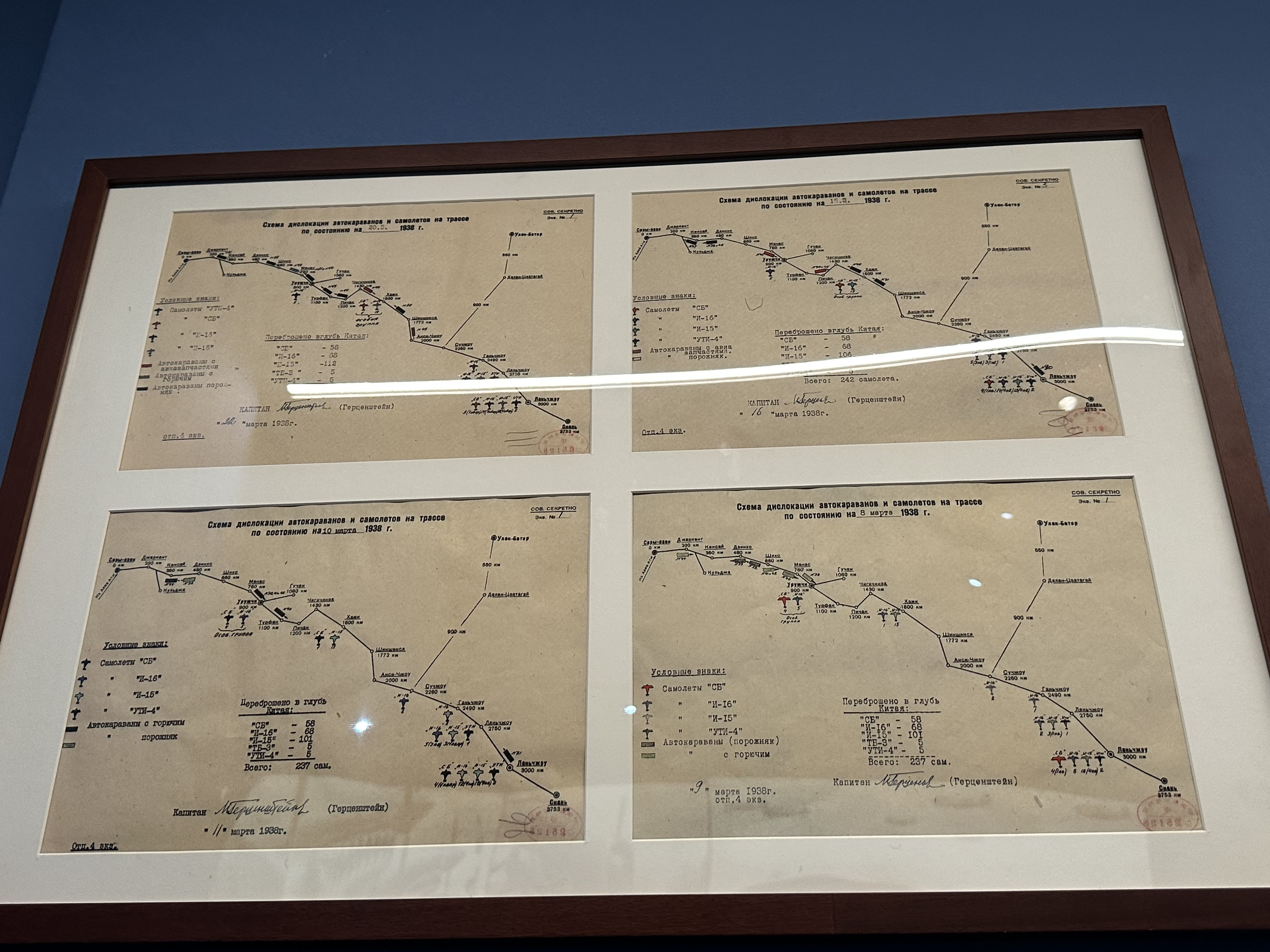 展览还展示多份珍贵文件,包括:1938年3月苏联援华运输线路上所部署的车队与飞机行进的路线图;苏联援华物资陆空运输配置的图表,清晰呈现了1938年2月苏联对华空中支援力量的部署情况等,展现铸就抗战“生命线”的烽火岁月。